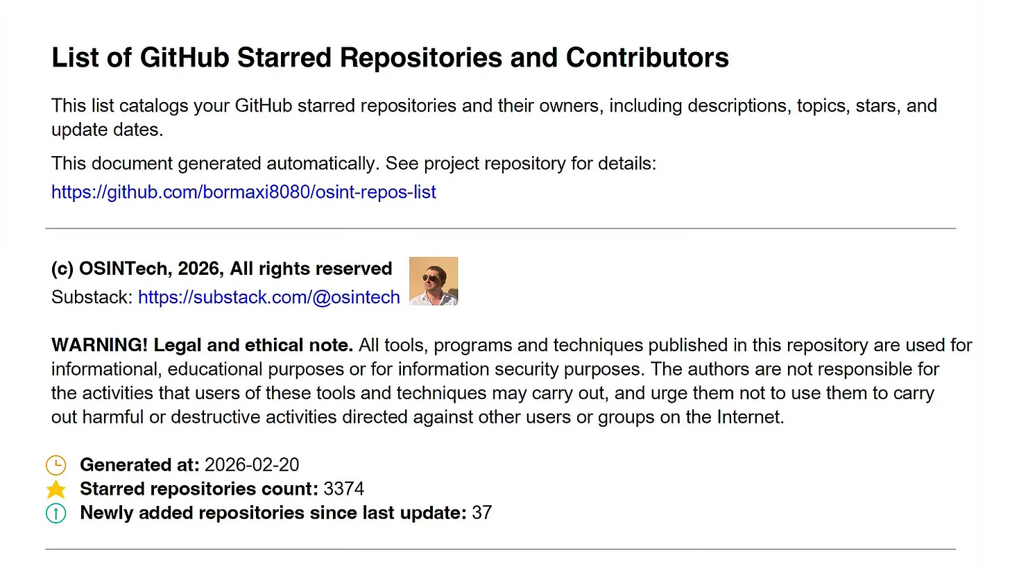 Full OSINT Repos List Collection available for paid Subscribers.