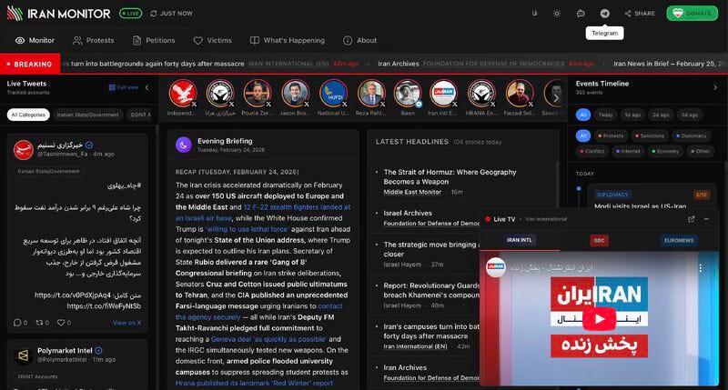 Iran Monitor. Real-Time OSINT Dashboard for Iran